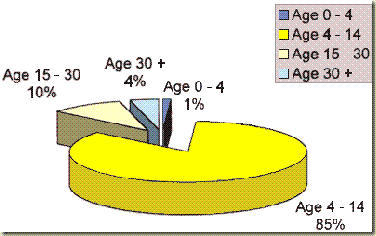 Another survey -- by the International Bible Society -- indicated that 83% of all Christians make their commitment to Jesus between the ages of 4 and 14. The Barna Research Group surveys demonstrate that American children ages 5 to 13 have a 32% probability of accepting Christ, but teens age 14 to 18 have only a 4% probability of doing so. Adults age 19 and over have just a 6% probability of becoming Christians.